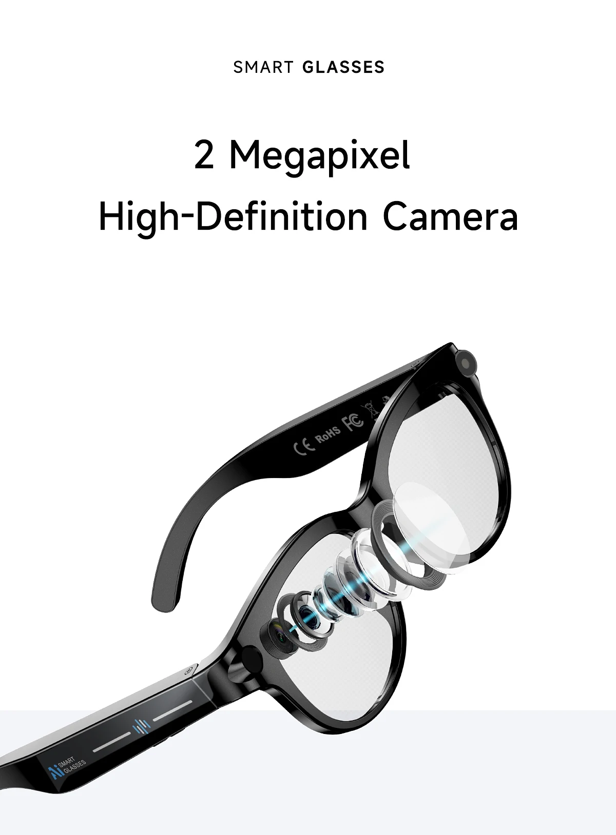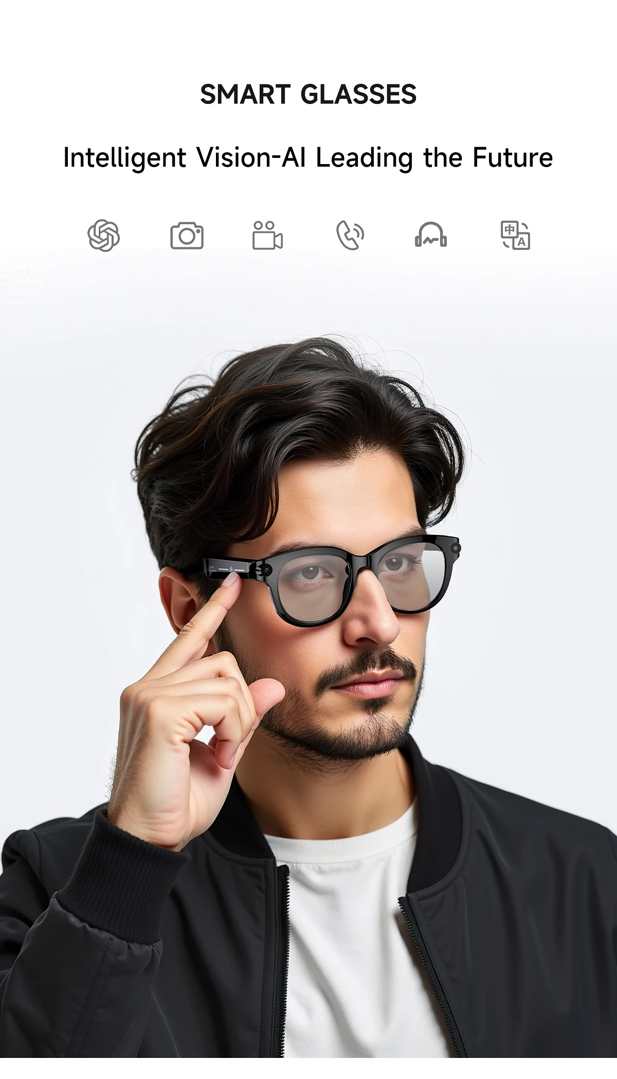 2026 AI Smart Glasses for Men Women 200W HD Camera 1080P Video AI Voice Assistant Translation Music Playback LED Flashlight